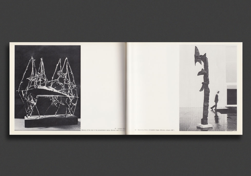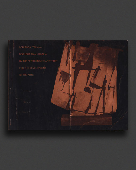 Scarce 1971 Australian catalogue published to accompany Scultura Italiana : brought to Australia by the Peter Stuyvesant Trust for the Development of the Arts, a major touring exhibition on modern Italian sculpture that travelled the world throughout the 1960s into the 1970s, including ten stagings in Australia alone. Features the work of Giacomo Benevelli, Floriano Bodini, Corrado Cagli, Aldo Calo, Angelo Canevari, Cosimo Carlucci, Pietro Cascella, Pietro Consagra, Roberto Crippa, Pericle Fazzini, Nino Franchina, Franco Garelli, Quinto Ghermandi, Emilio Greco, Berto Lardera, Edgardo Mannucci, Giacomo Manzu, Marino Marini, Arturo Martini, Marcello Mascherini, Umberto Mastroianni, Francesco Messina, Umberto Milani, Luciano Minguzzi, Basaldella Mirko, Mario Negri, Augusto Perez, Arnaldo Pomodoro, Gio Pomodoro, Medardo Rosso, Giuditta Scalini, Loreno Sguanci, Francesco Somaini, Alberto Viani. Illustrated throughout with biographies on each artists and exhibition checklist, texts, etc.