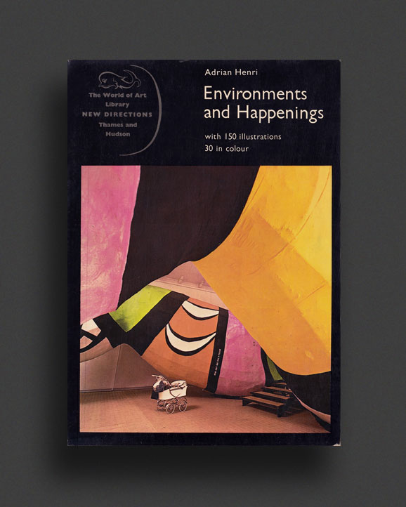 Environments and Happenings by painter and poet Adrian Henri, published by Thames & Hudson in 1974, forms one of the first mainstream book surveys to trace the phenomenon of environmental/performative/total living artworks that became prevalent in the 1960s/70s. This historical study is profusely illustrated in colour and b/w with many international works from Fluxus to Zero to Dolle Mina to Nouveau Réalisme to Provo to Gutai to The Situationists and much more. Includes the works of Joseph Beuys, Clarence Schmidt, Ray Johnson, Öyvind Fahlström, Paul Thek, Yves Klein, Allan Kaprow, Hans Haacke, Kurt Schwitters, Marcel Duchamp, Guerllia Art Action Group, Daniel Spoerri, Wolf Vostell, Gustav Metzger, Peter Kuttner, Jackson Pollock, Alison Knowles, Dick Higgins, Robert Morris, Situationist International, Ferdinand Kriwet, Klaus Rinke, Duane Hanson, A-Yo, Meret Oppenheim, Space Structure Workshop, Ferdinand Cheval, Dolle Mina (Mad Mina), Robert Smithson, Jeff Nuttall, Stefan Wewerka, Christo, Dennis Oppenheim, Vladimir Tatlin, Provo, Barry Flanagan, Andy Warhol, Meredith Monk, Atsuko Tanaka, Kazuo Shiraga, Ed Keinholz, Yayoi Kusama, Piero Gilardi, Niki de Saint-Phalle, Jean Tinguely, Claes Oldenburg, Les Levine, James Rosenquist, Red Grooms, Tom Wesselmann, George Segal, Eduardo Paolozzi, and many many more. Includes reproductions of performance scripts, partial chronology, etc.