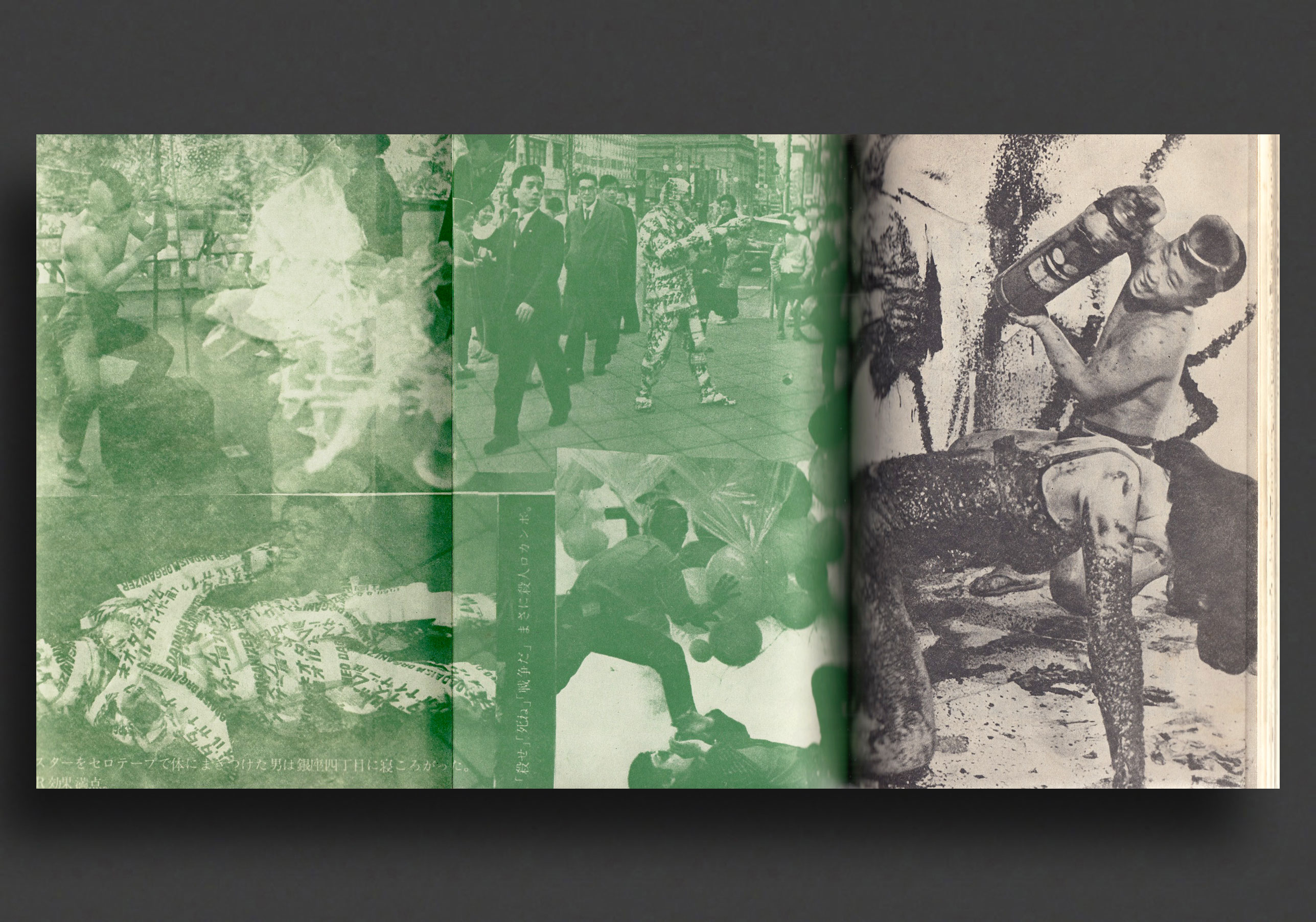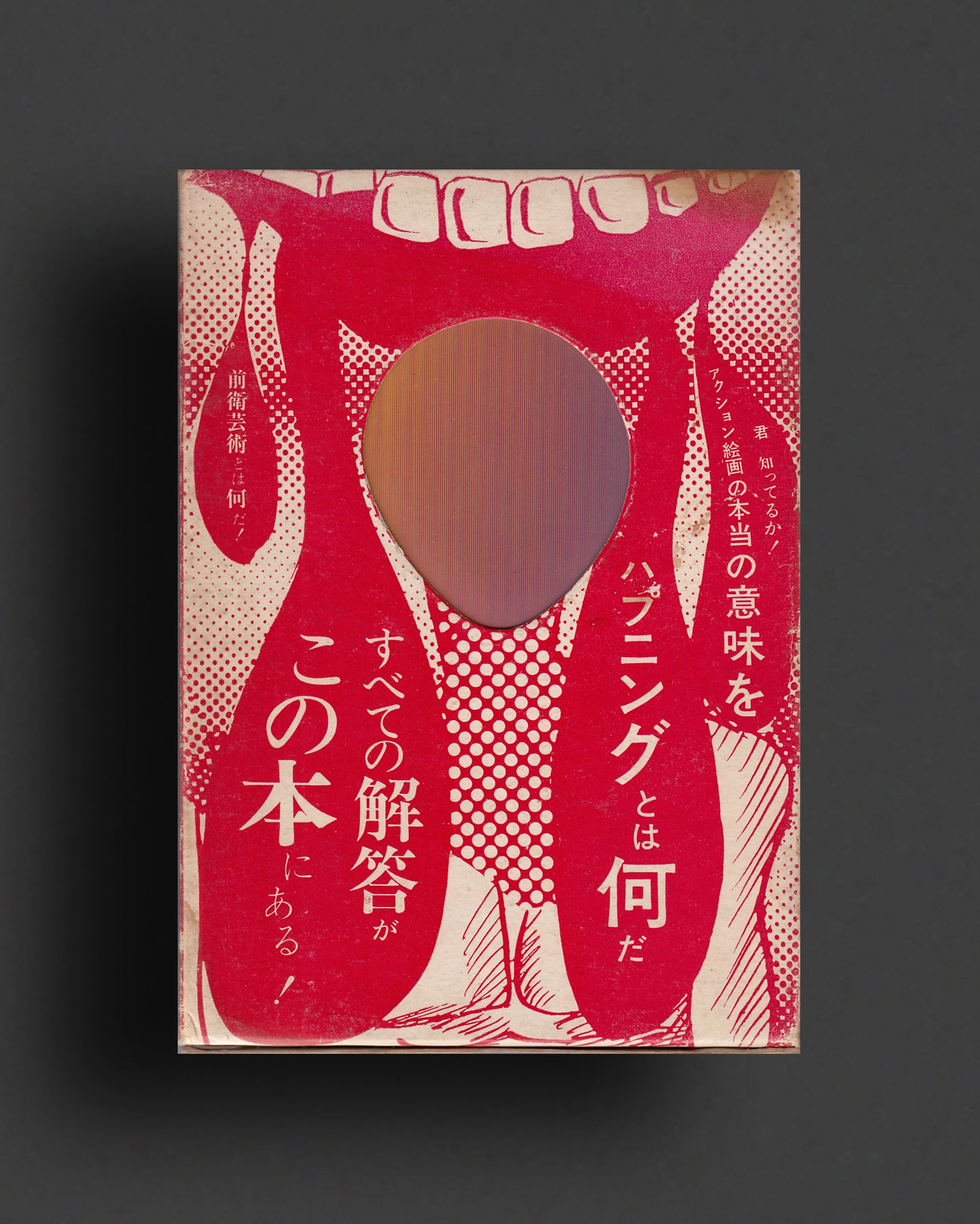 Rare first 1968 slipcase edition of legendary Japanese Neo-Dadaist Ushio Shinohara's autobiography art-book, published right before he left Japan for New York City. With endorsement on the slipcase from Japanese artist and theorist Tarō Okamoto, the book is as explosively designed as an iconic Shinohara boxing performance. Wrapped in a lenticular cover and spanning many different paper stocks and fold-out plates, "The Way of the Avant-Garde" is profusely illustrated with bold graphics, exhibition and performance photographs, cartoons and collages accompanying Shinohara's texts that document his post-war avant-garde work in Tokyo — a violent blend of Japanese unrest, Action Art and American Pop.