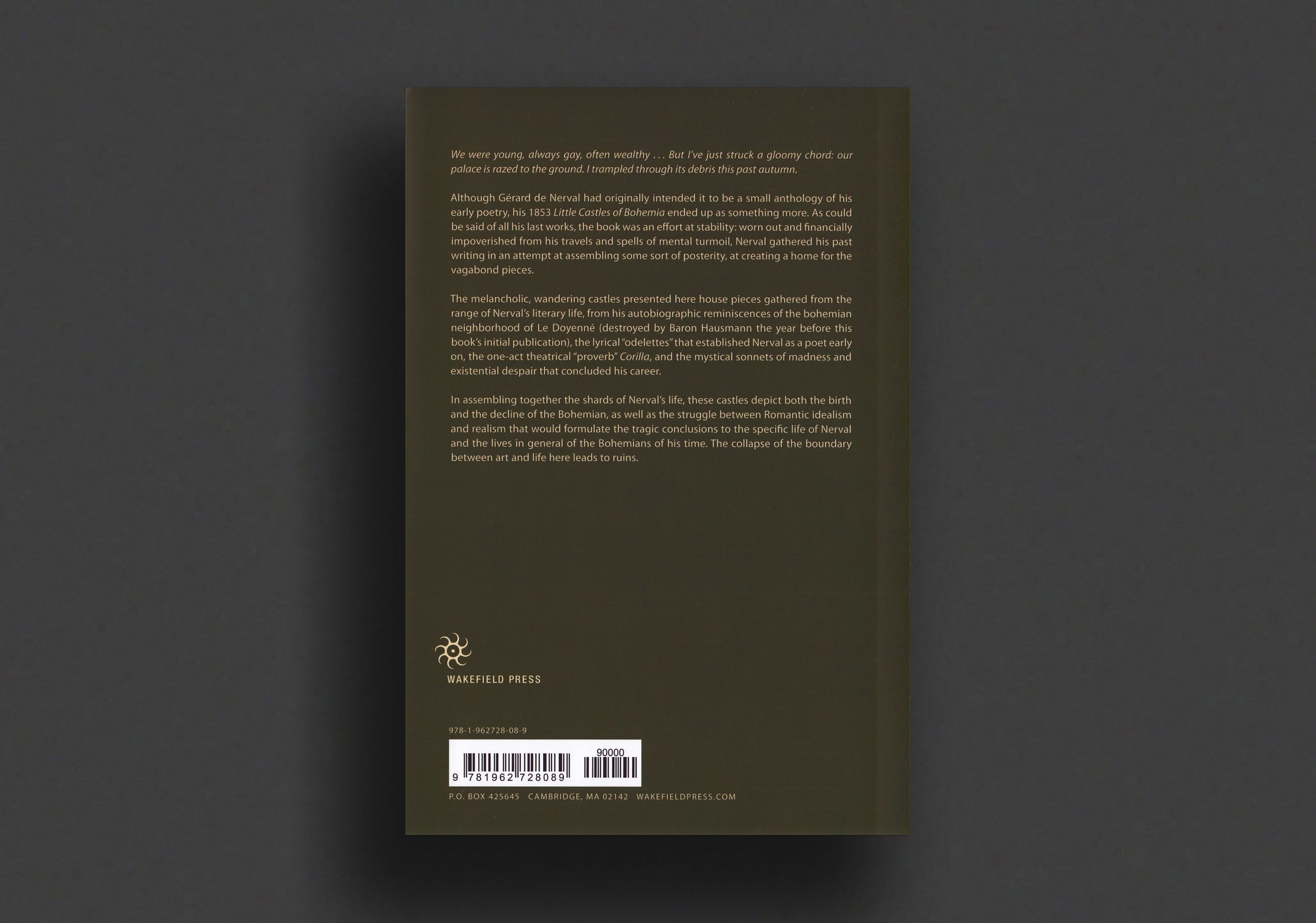 The melancholic, wandering castles presented here house pieces gathered from the range of Nerval’s literary life, from his autobiographic reminiscences of the bohemian neighborhood of Le Doyenné (destroyed by Baron Hausmann the year before this book’s initial publication), the lyrical “odelettes” that established Nerval as a poet early on, the one-act theatrical “proverb” Corilla, and the mystical sonnets of madness and existential despair that concluded his career.
