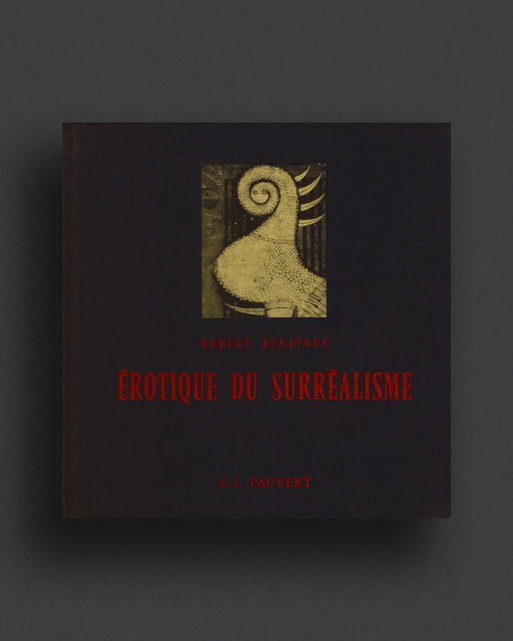 First 1965 clothbound edition of Érotique du Surréalisme, Robert Benayoun's study on the importance of the erotic in the surrealist arts, from L'Androgyne to The Sadist, Le Femme-Enfant to the Poetic Machine, surveying Symbolist and Art Brut precursors, and encompassing the multitude manifestations of eroticism across a broad array of visual and poetic works from the surrealist spectrum, even into the influence in film (a field Benayoun was known in). Reproducing poems and quotes throughout, this heavily illustrated volume reproduces many artworks in b/w and colour plates, including works and works by Max Walter Svanberg, Toyen, Hans Bellmer, Friedrich Schröder Sonnenstern, Heinrich Anton Müller, Marcel Duchamp, Jindřich Štyrský, Brancusi, Victor Brauner, Mimi Parent, Andre Masson, Louis Aragon, Yves Tanguy, Valentine Hugo, Jean Arp, Max Ernst, Balthus, Rene Magritte, André Breton, Giorgio de Chirico, Henry Fuseli, Dali, Man Ray, Henri Rousseau, Picasso, Miro, Edvard Munch, William Blake, Hieronymus Bosch, Ingrid Bergman, Michelangelo Antonioni, Konrad Klapheck, Francis Picabia, Óscar Domínguez, Jean Benoit, Paul Delvaux, Pierre Molinier, and many more.