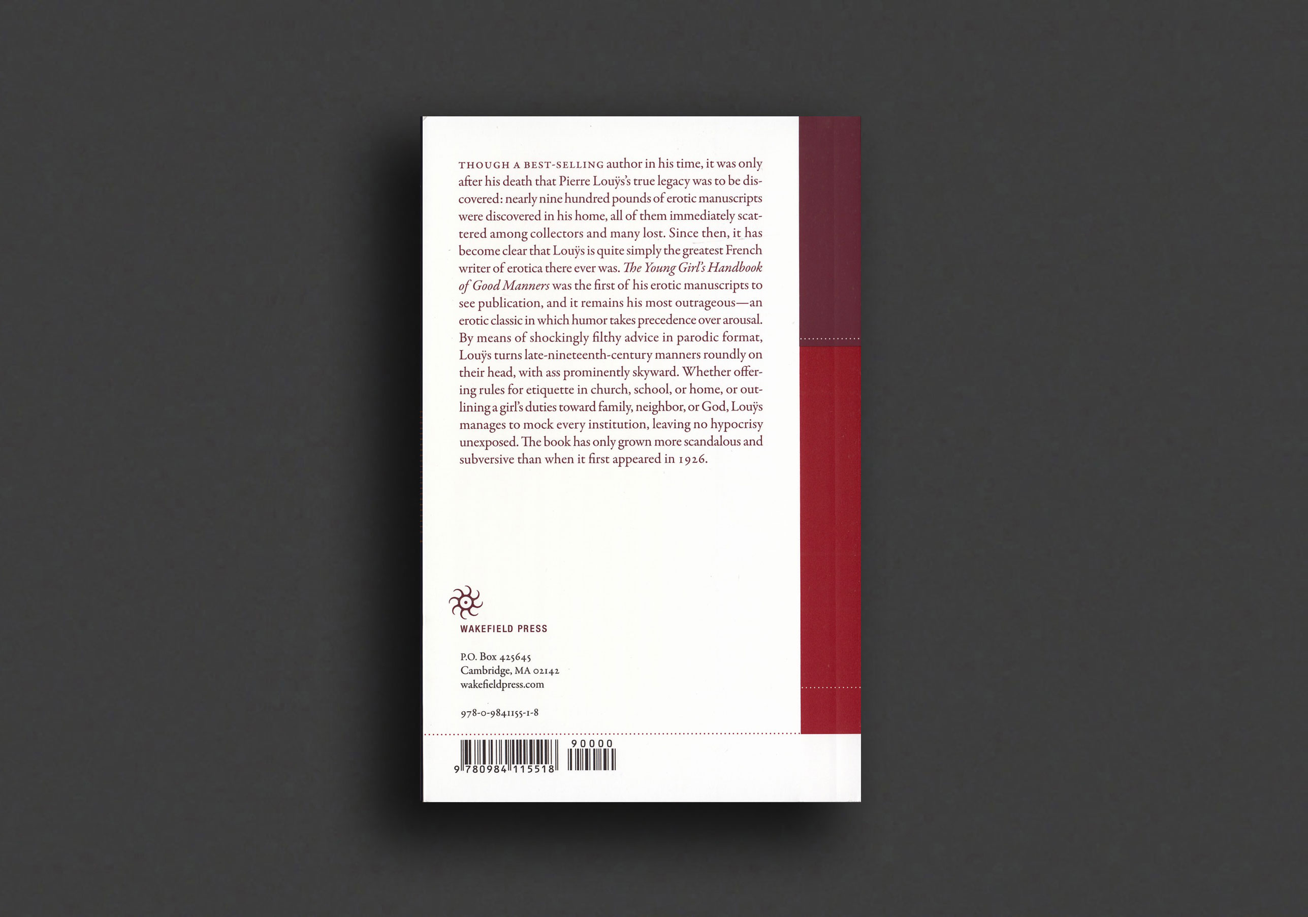 The first of Pierre Louÿs’s erotic works to see publication after his death, The Young Girl’s Handbook of Good Manners is also his most outrageous, and one of the few erotic classics in which humor takes precedence over arousal. By means of shockingly filthy advice and a parodic format, Louÿs turns late nineteenth-century manners roundly upon their head, with ass prominently skyward. Whether he is offering rules for etiquette in church, school, or home, or outlining a girl’s duties toward family, neighbor, or God, Louÿs manages to mock every institution, leaving no hypocrisy unexposed. The book has only grown more scandalous and subversive than when it first appeared in 1926.