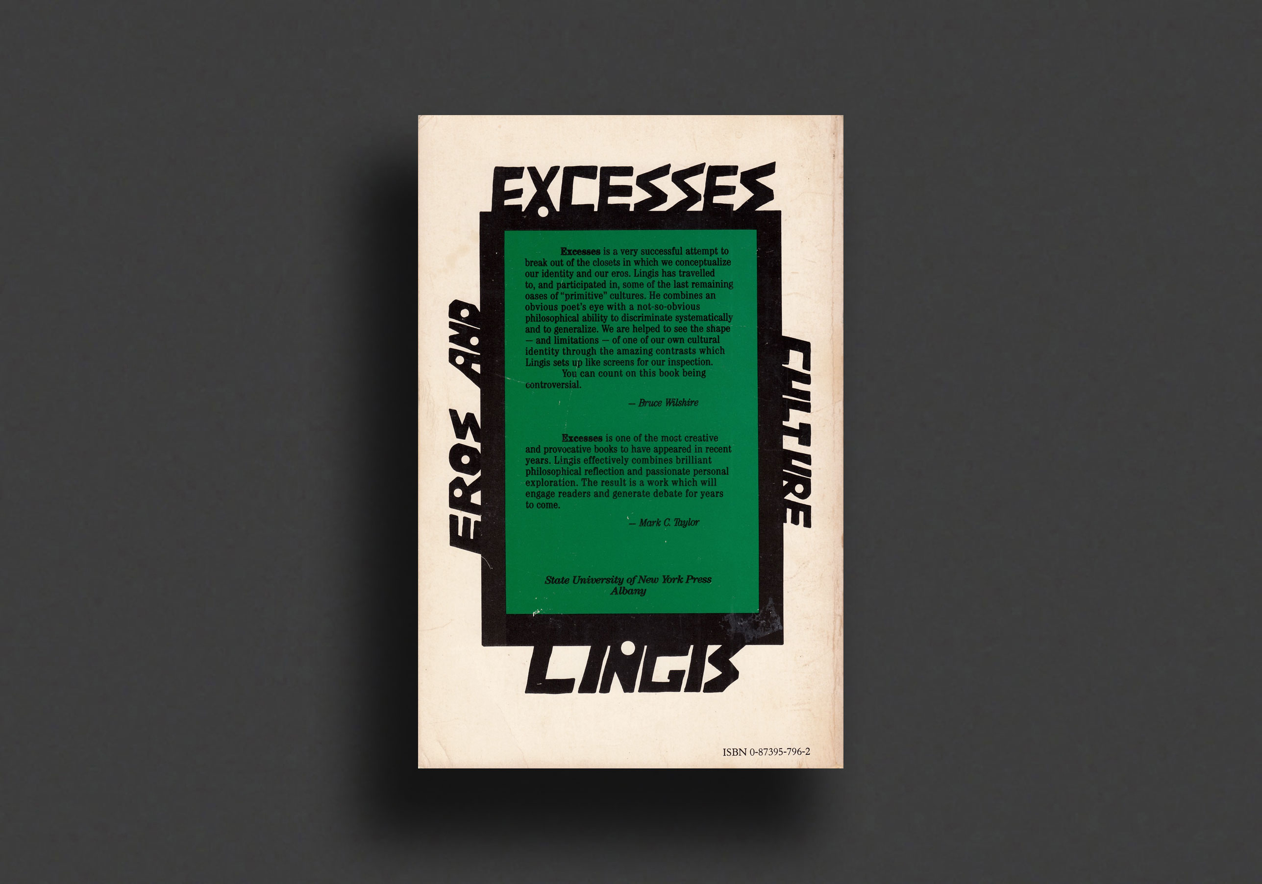 "Excesses is a very successful attempt to break out of the closets in which we conceptualize our identity and our eros. Lingis has travelled to, and participated in, some of the last remaining oases of “primitive” cultures. He combines an obvious poet’s eye with a not-so-obvious philosophical ability to discriminate systematically and to generalize. We are helped to see the shape―and limitations―of one of our own cultural identity through the amazing contrasts which Lingis sets up like screens for our inspection. You can count on this book being controversial."