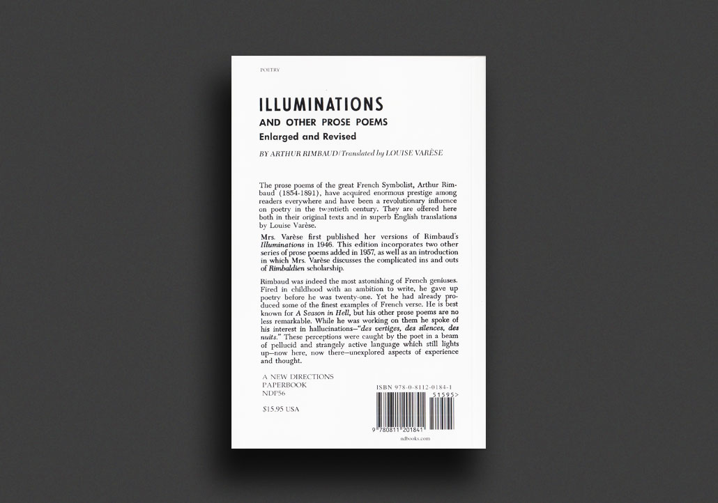 The prose poems of the great French Symbolist, Arthur Rimbaud (1854-1891), have acquired enormous prestige among readers everywhere and have been a revolutionary influence on poetry in the twentieth century. They are offered here both in their original texts and in superb English translations by Louise Varèse. Mrs. Varèse first published her versions of Rimbaud's Illuminations in 1946. Since then she has revised her work and has included two poems which in the interim have been reclassified as part of Illuminations. This edition also contains two other series of prose poems, which include two poems only recently discovered in France, together with an introduction in which Miss Varèse discusses the complicated ins and outs of Rimbaldien scholarship and the special qualities of Rimbaud's writing.