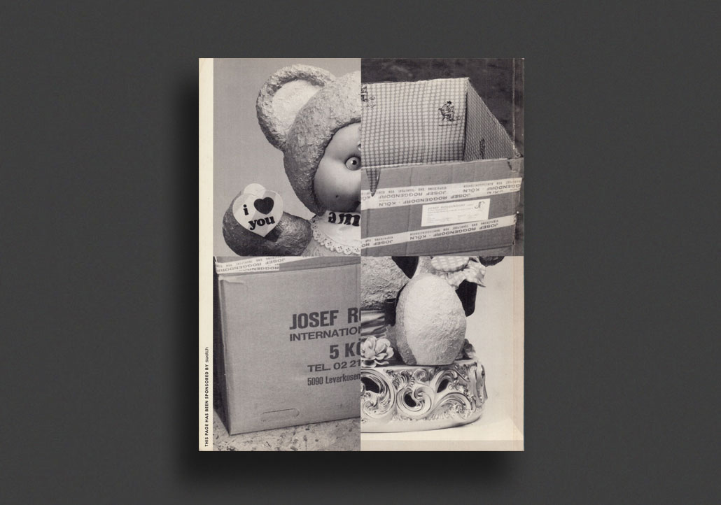 “The exhibition and the catalogue “Eau de Cologne” fulfil the claim of my gallery to show the most interesting aspects of contemporaneous art. This exhibition presents five female artists: Ina Barfuss, Jenny Holzer, Barbara Kruger, Cindy Sherman and Rosemarie Trockel, and the catalogue which includes many more young and older female artists, writers, critics and art-dealers want to show art in its social context. I see this exhibition as an example. According to my subjective observation and based on the experiences and contacts of almost three years work as art-dealer I have made a selection. The time of working on this catalogue was limited, too, and it is for these reasons that some artists, curators and art-critics are not mentioned. I approve of realizing this “idea” now, 1985.”—from introduction by Monika Sprüth