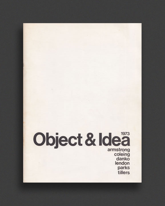 Extremely rare catalogue of the great OBJECT & IDEA exhibition, presented at the National Gallery of Victoria in 1973, curated by Brian Finemore (Curator of Australian Art and co-curator of The Field in 1968). With the assistance of Graeme Sturgeon (Exhibitions Officer 1970–1980), this important survey exhibition helped in defining radical new shifts in contemporary Australian art at the start of the 1970s by bringing together new work by 6 young Australian artists; John Armstrong, Tony Coleing, Aleks Danko, Nigel Lendon, Ti Parks and Imants Tillers, all of whom are profiled here in-depth with illustrations of many of their works, along with biographies, portraits, and notes. Introduction by Finemore and Sturgeon, with texts by Brian Finemore, Gregory Heath, Ian Millis and John Stringer. Designed by Graeme Sturgeon and Melbourne artist Peter Cripps. "This book records an exhibition and poses some questions for Australian Art in 1973. New Art? New Aesthetic? New Artist? New Museum?". One of the finest, yet seldom seen Australian art catalogues. Highly recommended.