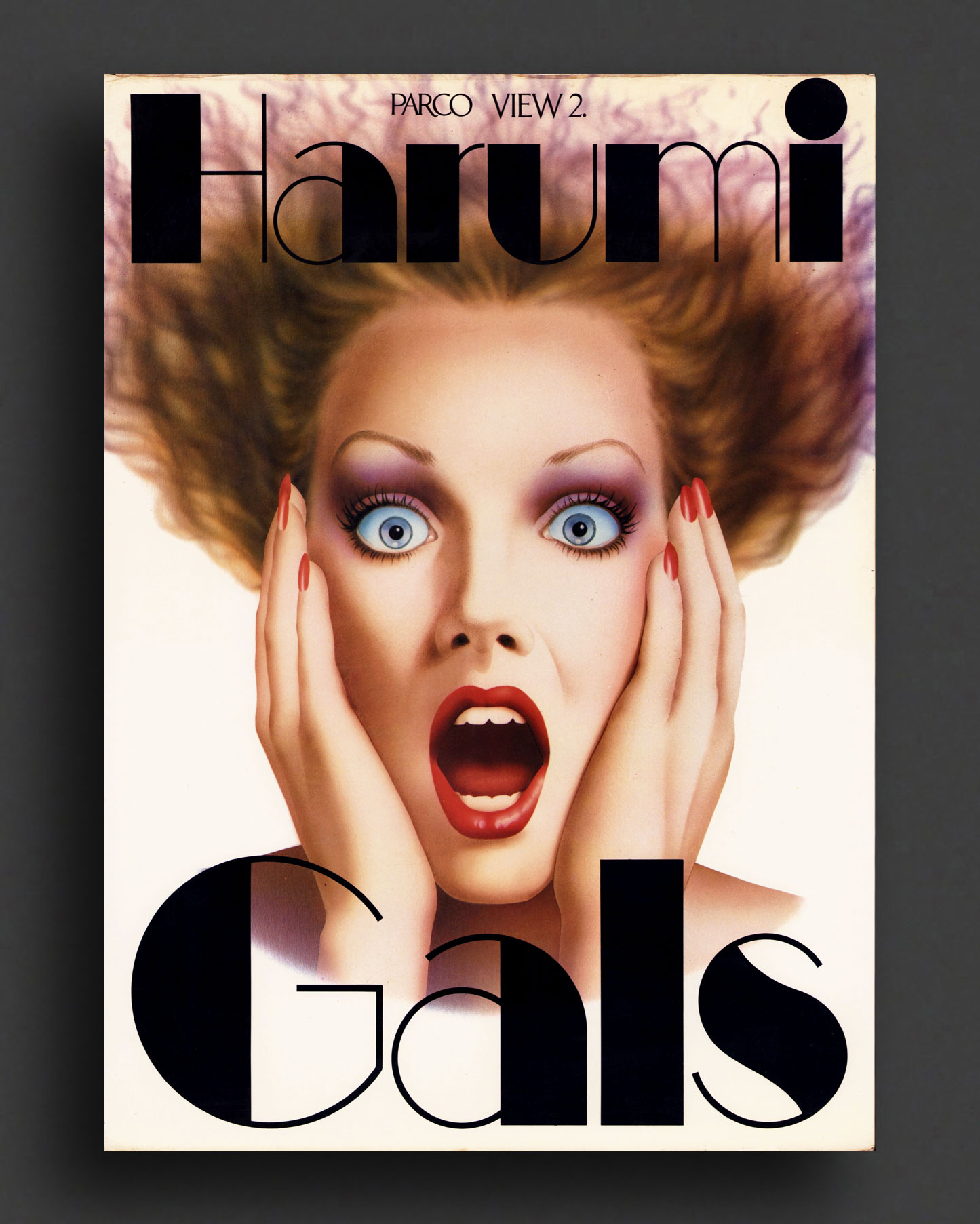 First printing of the great "Harumi Gals" from 1978, the highly acclaimed, lavishly over-sized, glossy, and long out-of-print artbook from Japan's preeminent airbrush artist of the 1970s, and the leading female graphic artist in the world, Harumi Yamaguchi, published by PARCO in Tokyo. Yamaguchi studied alongside key conceptual artists such as Jiro Takamatsu at the esteemed Tokyo University of Arts, but she found the academic environment ‘depressing,’ abandoned her oil painting, and moved to freelance commercial work and joined the all-female advertising division of the Shibuya department store/cultural institution PARCO, where Yamaguchi launched her signature female protagonists in 1972, instantly established herself as an illustrator that symbolized her era. Her irreverent depictions of energetic young women became symbolic of changes of the role of the woman in Japanese postwar society. The Harumi Gals personified unapologetic poise and dynamism, updating the glamorous pin-ups of George Petty or Vargas for the era of the new Pop woman, rendered by a woman. The Harumi Gal emanated agency and autonomy – characteristics rarely seen in commercial depictions of women in Japan in the 1970s. Within the Japanese context, she appeared remarkably unabashed and, since her rise coincided with that of the women’s liberation movement, she has been popularly assessed as a representation of unfettered freedom and empowerment. Her apparent strength also made her a formidable marketing tool for PARCO.
