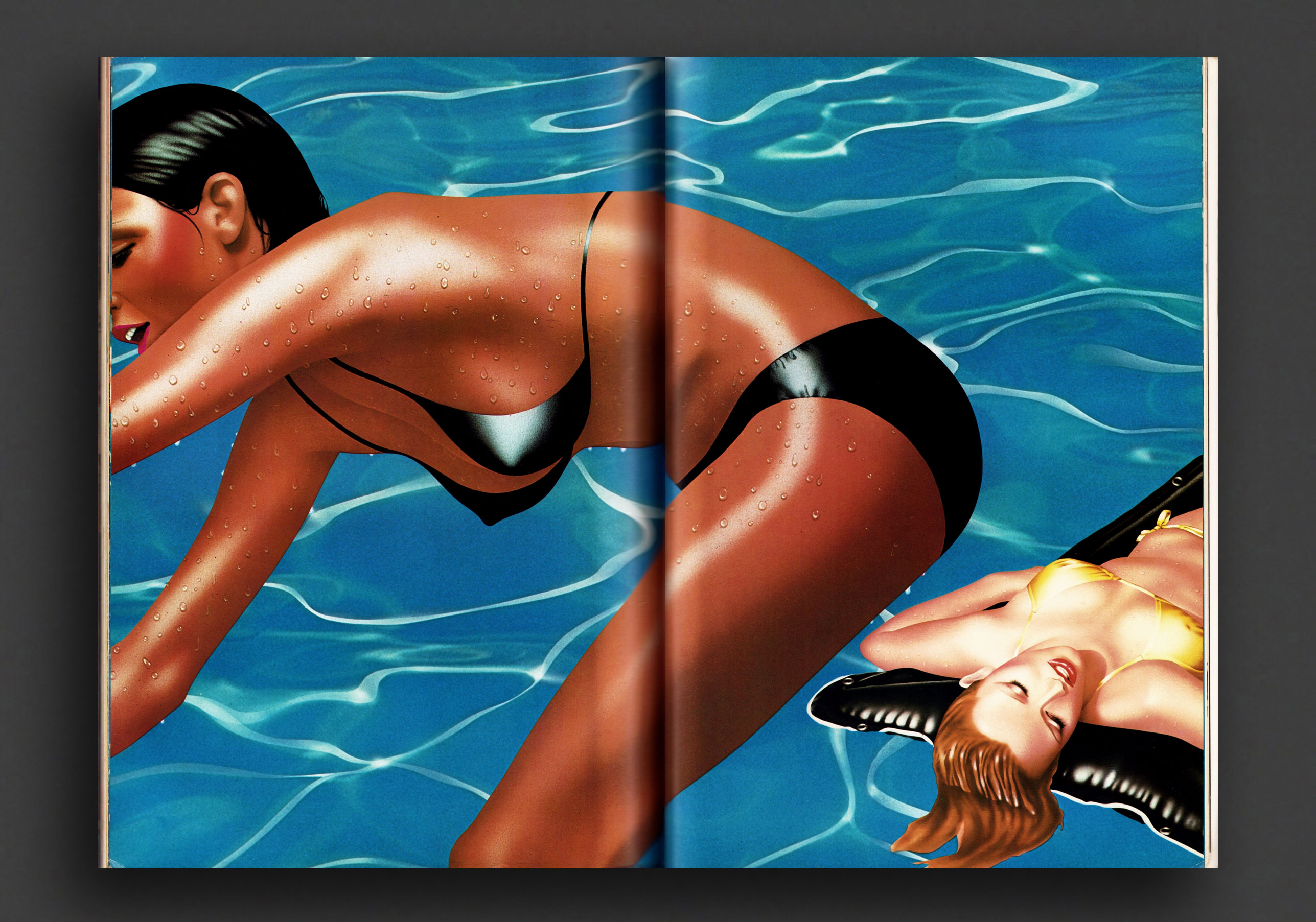 Art directed by the legendary graphic artist Tadanori Yokoo, Harumi Gals is not only packed with all Yamaguchi's most iconic vivid, full-colour, full-bleed, hyper-pop fantasy muses, it also includes Yamaguchi's wonderful staged reference photographs (where studio self-portraiture melds with the world of illusionary world of commercial glamour), reference models, many unseen works, wild collaborative spreads between Yamaguchi and Yokoo, photography by Michiko Matsumoto and Hideki Hosoya, rare studio insights, interviews, and a formidable list of contributing authors – the modernist graphic designer Ikko Tanaka, photographer Hajime Sawatari, and novelist Junnosuke Yoshiyuki among them – a testament to the seriousness with which PARCO treated her work and another fine example of Western distinctions between fine art and commercial art being shattered in Japan. Harumi in all her glory!