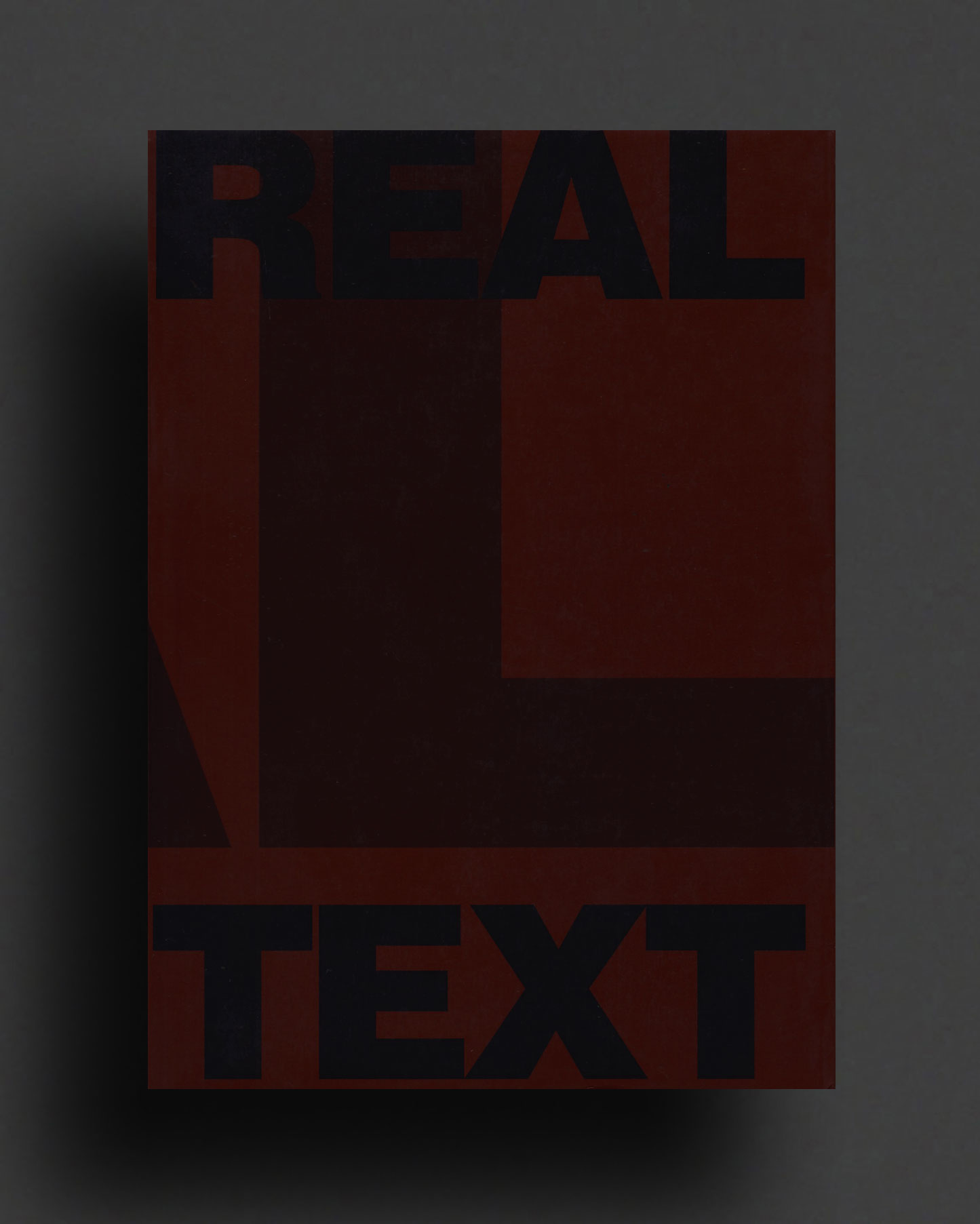 "REAL TEXT forms, so to speak, the "discursive bracket" between the individual parts of the exhibition (REAL SEX, REAL REAL, REAL AIDS). But it is also a separate exhibition part that, with a view to the consequences for art and aesthetics, outlines the philosophical, art historical and epistemological problem horizon of determining the self between the phantasm of identity and absorption into the structures of our highly differentiated society."—(From the foreword by Georg Schöllhammer and Christian Kravagna)