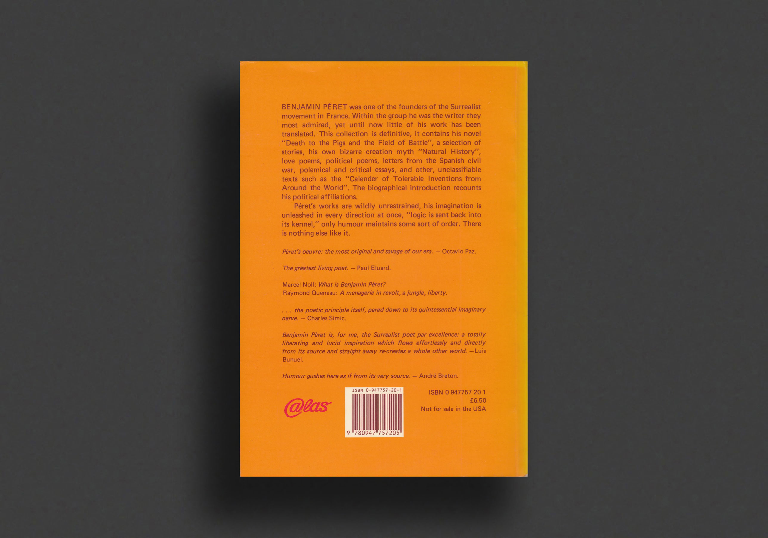 "Benjamin Péret is, for me, the Surrealist poet par excellence: a totally liberating and lucid inspiration which flows effortlessly and directly from its source and straight away re-creates a whole other world. - Luis Bunuel.