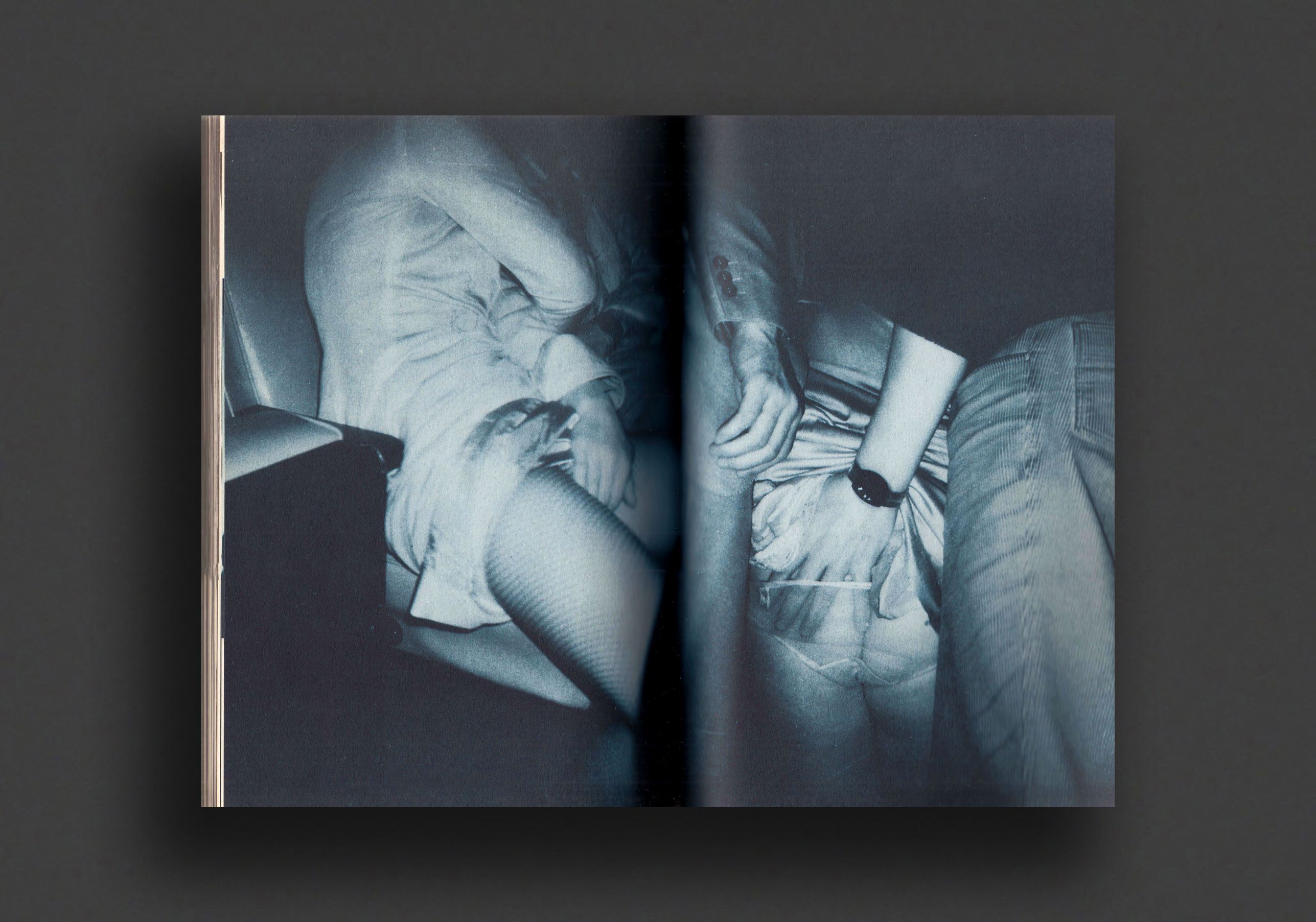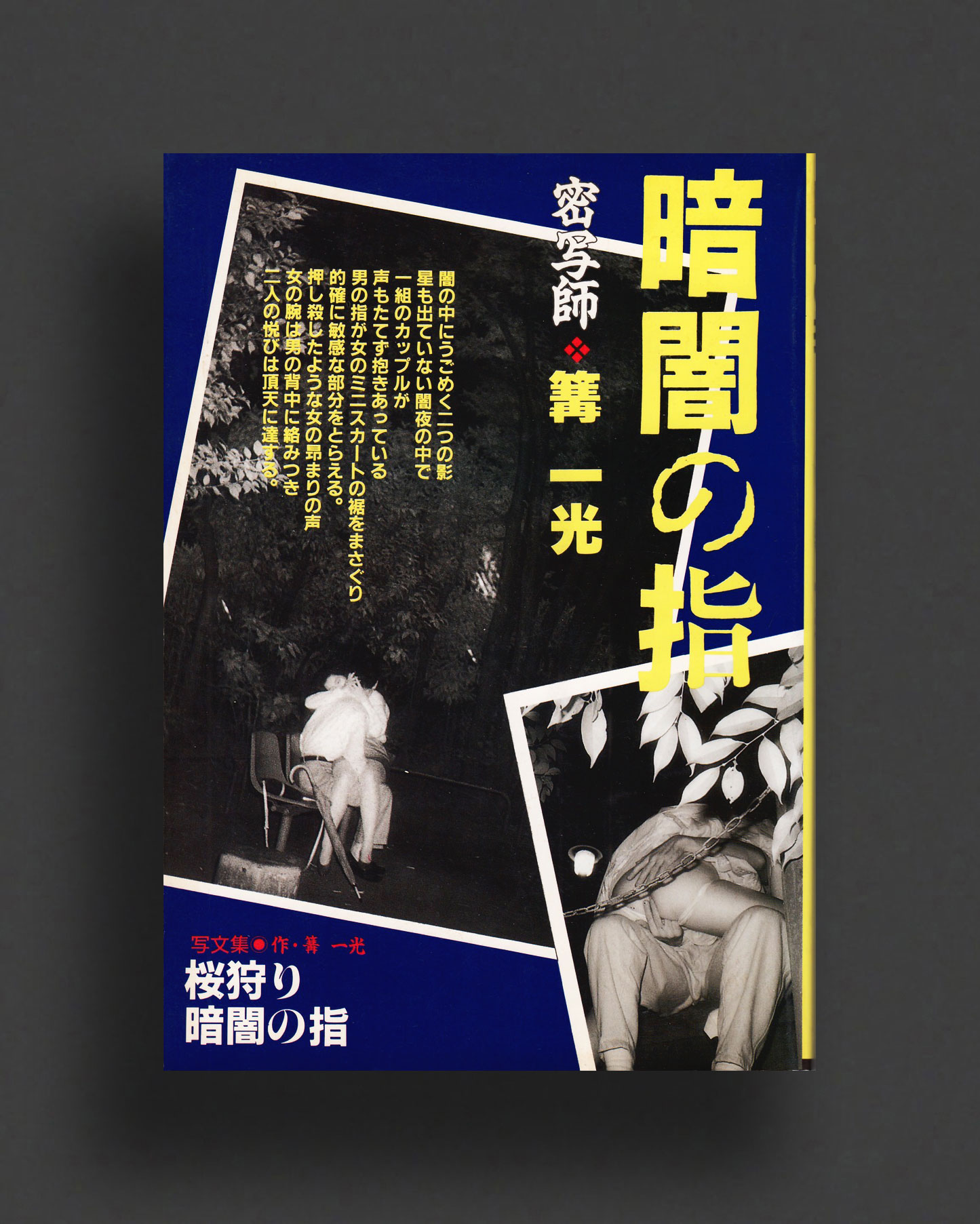 Fingers of Darkness is cover-to-cover monochrome reproductions of Kagari's grainy, blown-out infrared images that blur all lines between voyeur/participant and simulated/real, make for disorientating, sometimes claustrophobic, uneasy viewing. But they are also absolutely stunning, often tender, very revealing, and incredibly effective photo books that feel as conceptual as they do devious. Included are many photo stories by Kagari, particularly those in the Tokyo parks at night — his erotic Hanami photographs ("Cherry Blossom Hunting") when the public ecstasy of sakura season reaches climax, plus many of his unseen "chikan" photographs ala "Document Commuter Train" but transferred into dark cinemas and public bathrooms. As featured in The Photobook: Vol. III, by Parr & Badger, Kagari's fleeting in flagrante scenes capture erotic desire and criminal impulse engulfed by the soft folds of entangled garment fabrics with stunning hidden camera technique. Groping for intimacy in the cold metropolis. He went so far as to publish a how-to book for amateurs!
