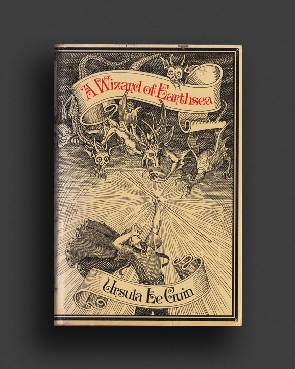 Rare first UK Hardcover edition of A Wizard of Earthsea, published by Gollancz, London in 1971. With illustrated dust jacket by David Smee and first appearance of the Earthsea map by John Bush.