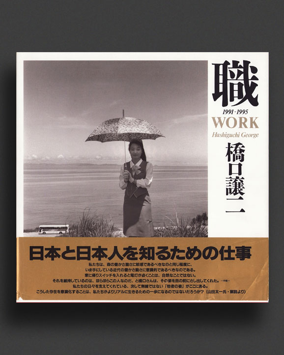 First edition, 1997 (2nd) printing of this wonderful photo book by Japanese photographer Joji "Geroge" Hashiguchi (b. born in Kagoshima in 1949), another in his acclaimed collections that also includes Seventeen's Map (1988), Father (1990) and Couples (1992) following Hashiguchi’s striking method of portraiture. "Work" is an extensive sociological typology consisting of documentary black and white portraits of Japanese people in their working environments across Japan spanning 1991—1995, from bartenders to pyrotechnicians, deep sea divers to mortuary cosmetologists, mostly shot as full-length portraits, paired with sociological data and interviews. Hashiguchi often choses two subjects from the same workplace based on age — one being older and the other younger — and the questions asked to each subject range from the length of career, current/starting salary to what the subject had for breakfast and dreams for from the future. Texts in both Japanese and English. Working as a sociological ethnographer with a survey approach, Hashiguchi produces a unique overview of Japanese society with a sense of considerable sociocultural diversity in light of stereotypic reductions of Japan as a homogeneous entity. One of his finest.