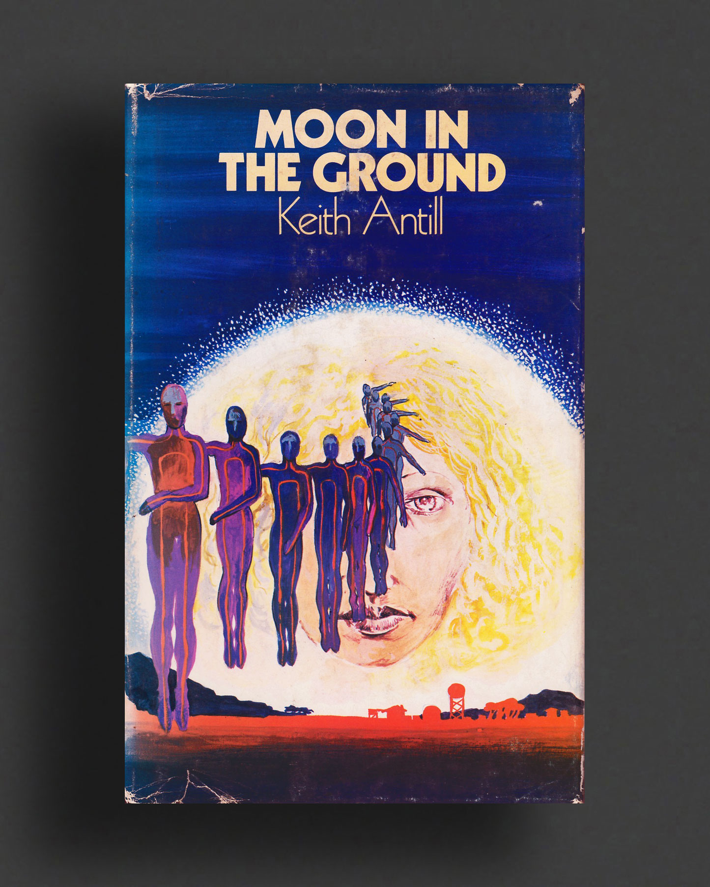 First 1979 hardcover edition of Keith Antill's 'Moon in the Ground', published by Norstrilia Press and cover artwork by Stephen campbell. Alick Keith Antill (b. Perth 1929—1999) was an Australian broadcaster and author whose sf novel, 'Moon in the Ground', involves an unpleasant US military intelligence unit battling to extract an Alien AI from Australia's Northern Territory. The Australians (and the Russians) resist.