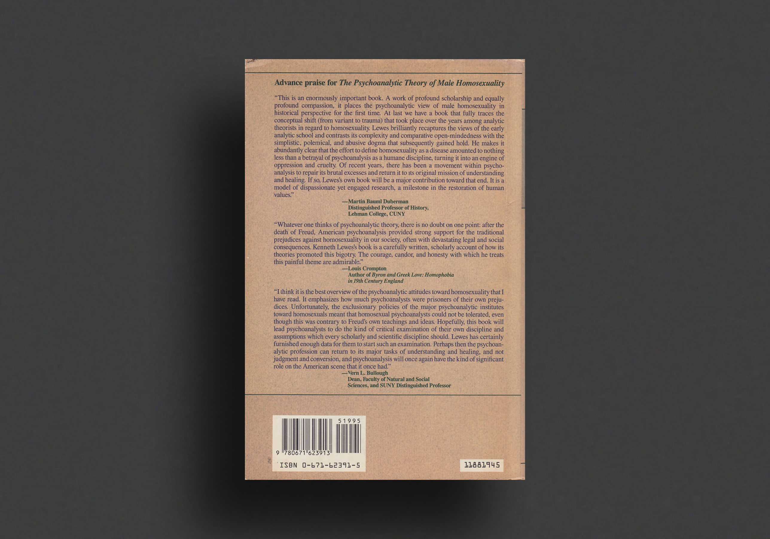 This landmark book is the first and only historical, cultural, and theoretical account of how male homosexuality has been viewed—and sometimes mis-construed-by the psychoanalytic tradition, from Freud through the 1980s.