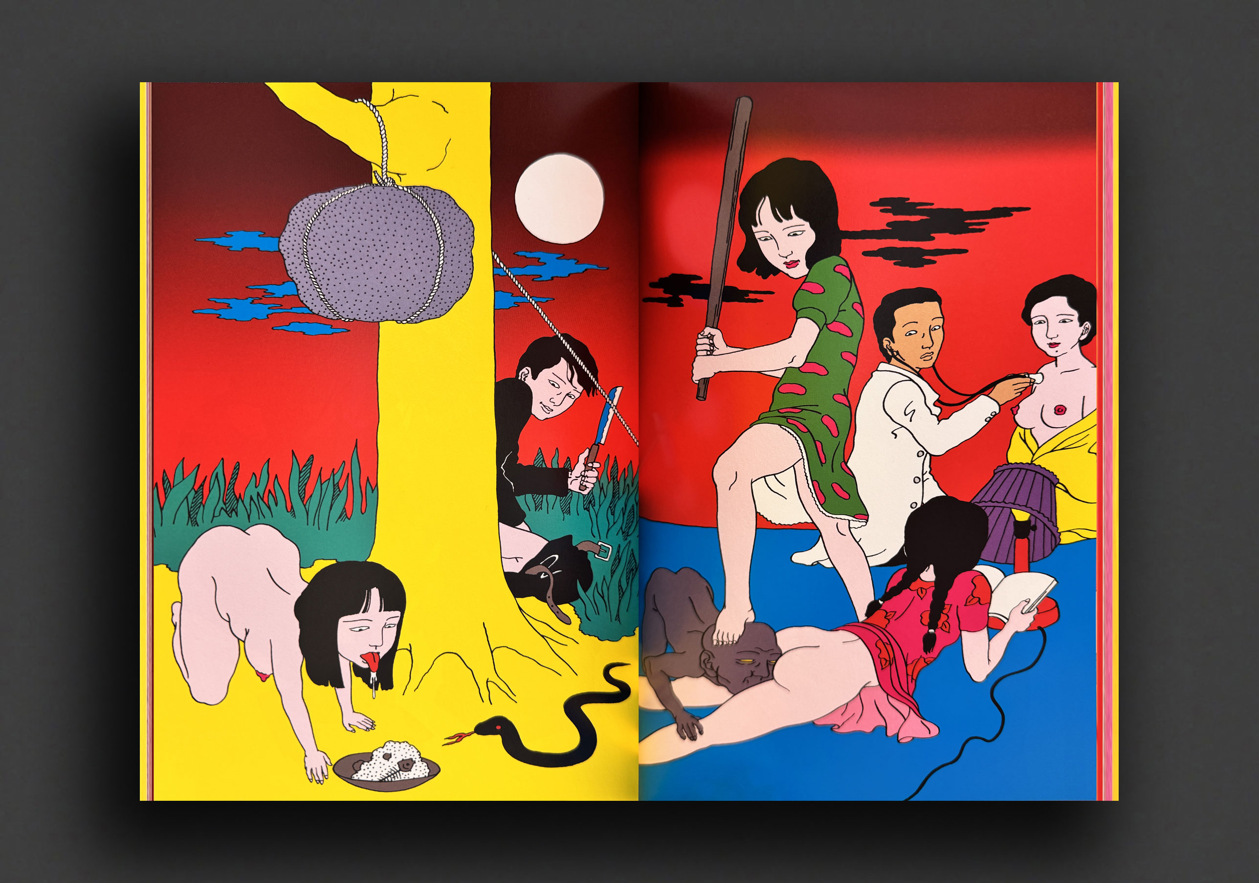 Toshio Saeki (1945—2019) was an illusive Japanese illustrator and painter, and icon of 1970s Tokyo counterculture, known for combining Japanese folklore, Yōkai spirits and elements of Western art with his own sophisticated aesthetics to create a unique, sensational world of eros, dark humour, and horror. Given the title “Erotic Engineer” by Timothy Leary, Saeki's provocative art broke all sexual taboos, questioned Japanese ideology and traditional views on love, desire and gender roles. Saeki’s surgically-precise graphic work is closely related to the Japanese cultural phenomenon ‘Erotic, Grotesque, Nonsense’ (ero, guro, nansensu).