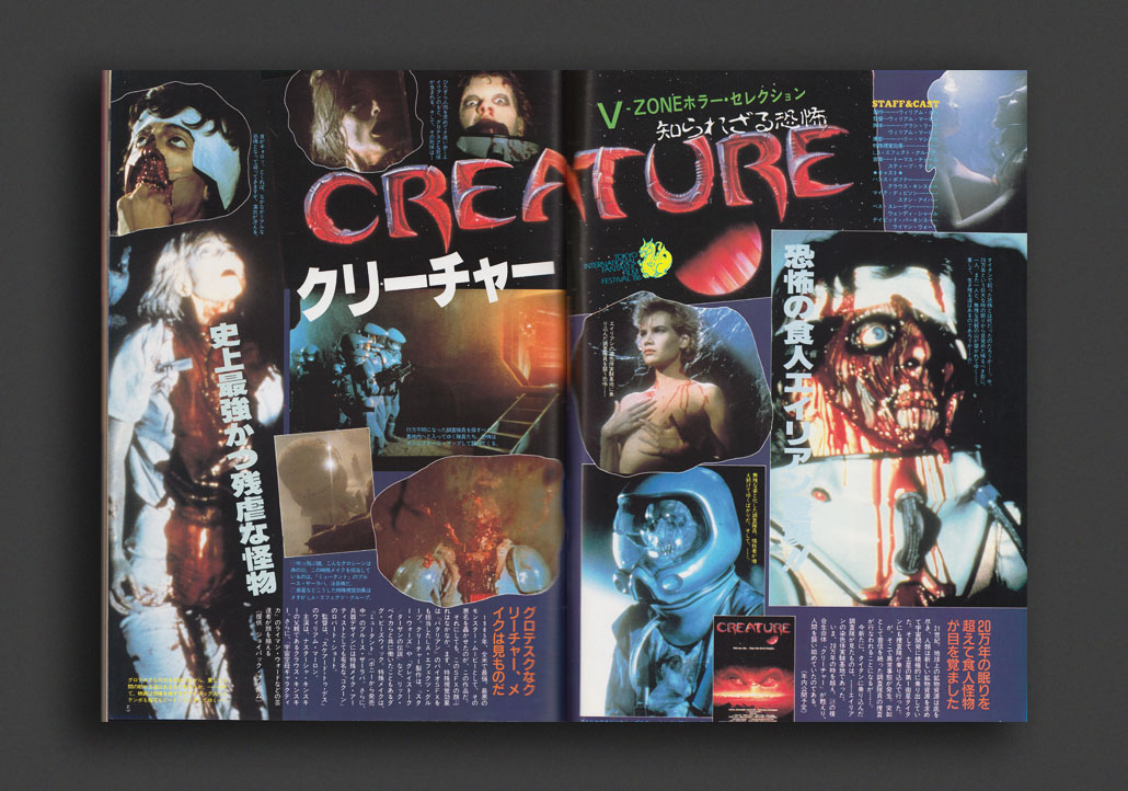 At the height of the home video revolution of the 1980s, V-Zone committed it's graphic-saturated pages to the explosion of horror, fantasy, and science fiction films that came with it. V-Zone's coverage of American horror is unparalleled in the world of Japanese magazines, but they also focused attention on historical and underground western science fiction and cult cinema, whilst also playing an important role in fostering the new wave of Japanese gore and V-Cinema (direct-to-video splatter films). Heavy with film features, interviews, stills, ads and reviews, each issue has amazing behind-the-scenes reportage from industry conventions and sfx fan parties, content you would not find anywhere but Japan, including a regular column by legendary Godzilla special effects artist Shinichi Wakasa on how to make your own SFX makeup, gore, and even craft realistic squibs with dimestore prophylactics.