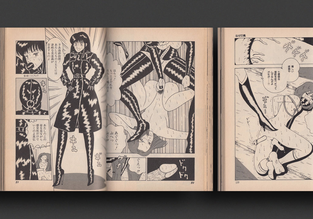 Rare lot of six early hentai manga books by underground Japanese erotic illustrator "El Bondage" (Miki Makimura), published by World Comics in Japan. An incredible collection of this little known in the West doujinshi master of the 1980s and forerunner to Kondom and his Bondage Fairies, featuring a huge collection of his best stories and galleries of truely demented, obsessively ink-rendered, sadomasochistic cartoon fantasies in his wild graphic technique. Worlds of endless woodgrain, rope and rubber, nobody is safe from El Bondage's madness and wicked sense of humour. There are even galleries of everyone's favourite manga and anime icons of the 1980's gagged and bound as you've never seen them before! A romp of total indecency and perverse imagination. Published by the same imprint as Bondage Fairies, each book is packed with maniac drawings, around 200 pages long, with original colour dust jackets. Lot includes: Bondage Zone (1985); Bondage Wars (1986); Yuri's Last Moments (1986); Another Bondage (1986); King of Laughter (1986); Silent Bondage (1997).