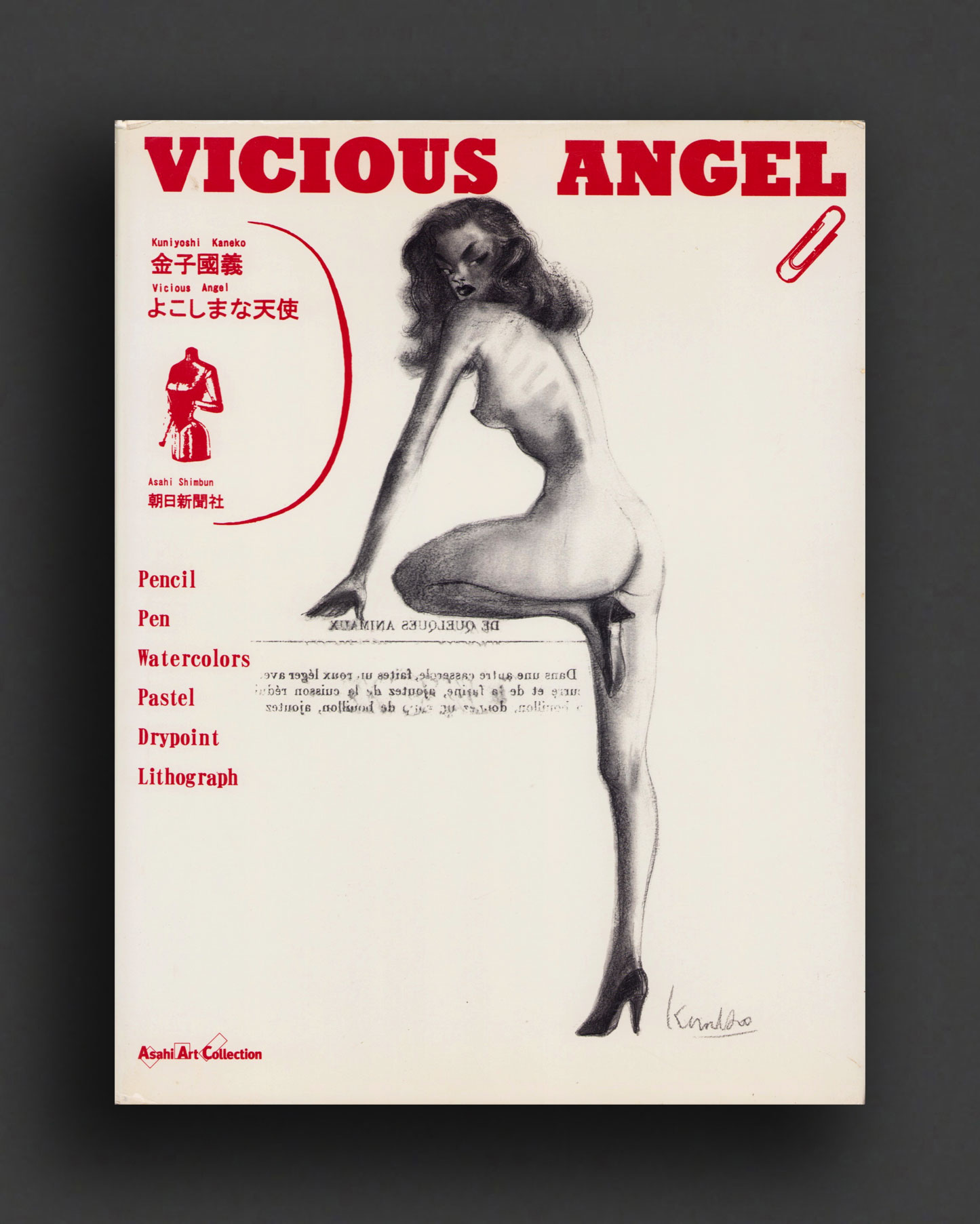 First 1998 hardcover edition of Kuniyoshi Kaneko's Vicious Angel, one of the finest volumes by Japanese painter, illustrator and photographer Kuniyoshi Kaneko (1936—2015), this copy with signed by the artist to the first blank page. Increasingly rare, Vicious Angel collects in one place the famous literary illustration of Kaneko, including Lewis Carroll's "Alice in Wonderland" and "Alice's Dream," George Bataille's "Story of The Eye" and "Madame Edwarda," and many others works spanning the 1970s to the 1990s. Kaneko's unique figurative drawings of young men and women in enigmatic, metaphysical scenes of surreal, stylised erotic abandon, channel the spirits of Cocteau, Bellmer, and Balthus; his controversial interpretations graced the pages and covers of these literary classics as they entered the Japanese consciousness. Free of convention, Kaneko's dreamlike scenarios were very often of same-sex, homo-erotic, even fetishistic nature, and his artwork, encouraged by editor and writer Shibusawa Tatsuhiko (1928—1987), became a staple in the underground publishing scene of 1970's Tokyo. Vicious Angel includes a biography, photographic portraits, bibliography, and an introductory essay by Kuniyoshi Kaneko entitled "In honor of the Holy God".