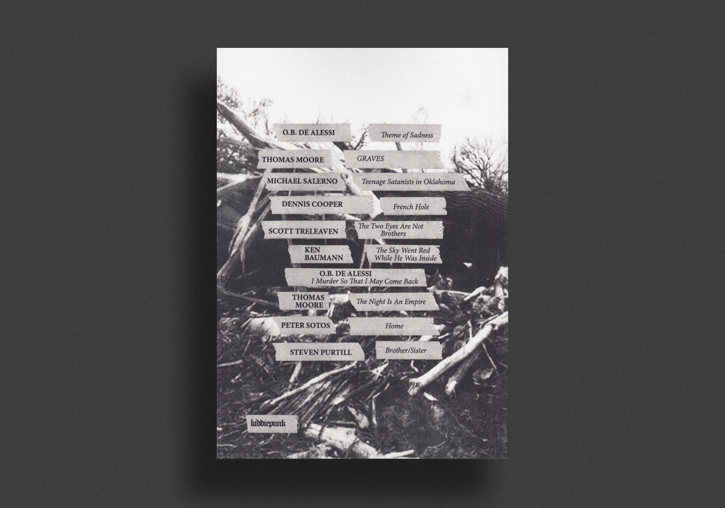 A reprint of Kiddiepunk's first-ever anthology, "Kiddiepunk Collected 2011-2015" presents ten out-of-print and sought-after Kiddiepunk publications in one 288-page volume. Included are works by Peter Sotos, Dennis Cooper, Thomas Moore, O.B. De Alessi, Scott Treleaven, Michael Salerno, Ken Baumann and Steven Purtill.