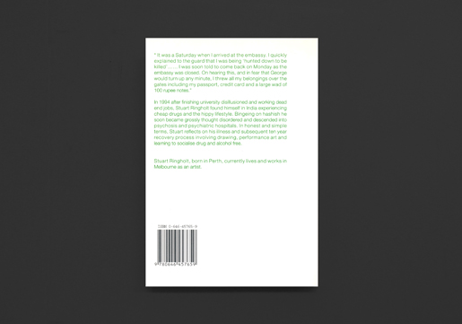 In 1994 after finishing university disillusioned and working dead end jobs, Stuart Ringholt found himself in India experiencing cheap drugs and the hippy lifestyle. Bingeing on hashish he soon became grossly thought disordered and descended into psychosis and psychiatric hospitals. In honest and simple terms, Stuart reflects on his illness and subsequent ten year recovery process involving drawing, performance art and learning to socialise drug free.