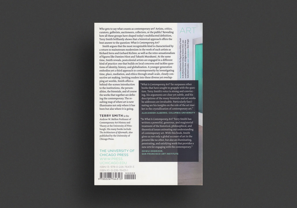 Revealing how all of these groups have shaped today's multifaceted definition, Terry Smith brilliantly shows that an historical approach offers the best answer to the question: What is Contemporary Art? Smith argues that the most recognisable kind is characterised by a return to mainstream modernism in the work of such artists as Richard Serra and Gerhard Richter, as well as the retro-sensationalism of figures like Damien Hirst and Takashi Murakami. At the same time, Smith reveals, postcolonial artists are engaged in a different kind of practice: one that builds on local concerns and tackles questions of identity, history, and globalisation. A younger generation embodies yet a third approach to contemporaneity by investigating time, place, mediation, and ethics through small-scale, closely connective art making.