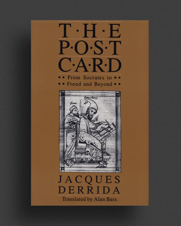 You situate the subject of the book: between the posts and the analytic movement, the pleasure principle and the history of telecommunications, the post card and the purloined letter, in a word the transference from Socrates to Freud, and beyond. This satire of epistolary literature had to be farci, stuffed with addresses, postal codes, crypted missives, anonymous letters, all of it confided to so many modes, genres, and tones. In it I also abuse dates, signatures, titles or references, language itself." — J. D.